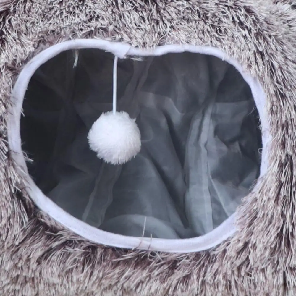 Plush Cat Tunnel Bed with Hanging Balls Washable Indoor Kittens Donut Tunnel Toy Small Large Cats Pets Round Peekaboo Cave Play Tunnel Pet Supplies