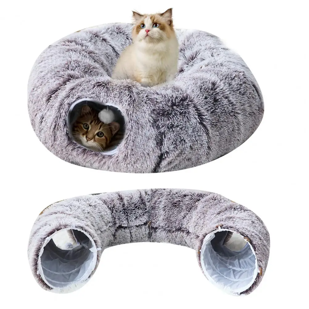 Indulge your furry friend with our luxurious cat tunnel bed. Crafted from soft, breathable plush material, this donut tunnel features a washable round mattress for easy cleaning. The widened tunnel is suitable for pets of all sizes, ensuring durability, softness, and warmth.